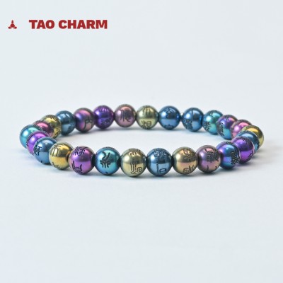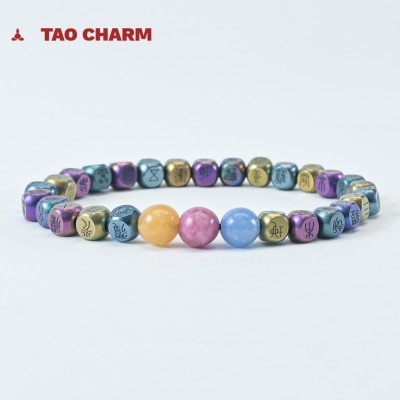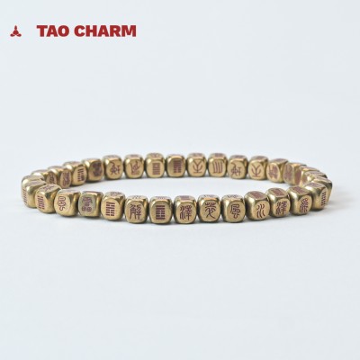 Sky Round and Earth Square Pearl Golden Light Divine Inscriptions Bracelet.